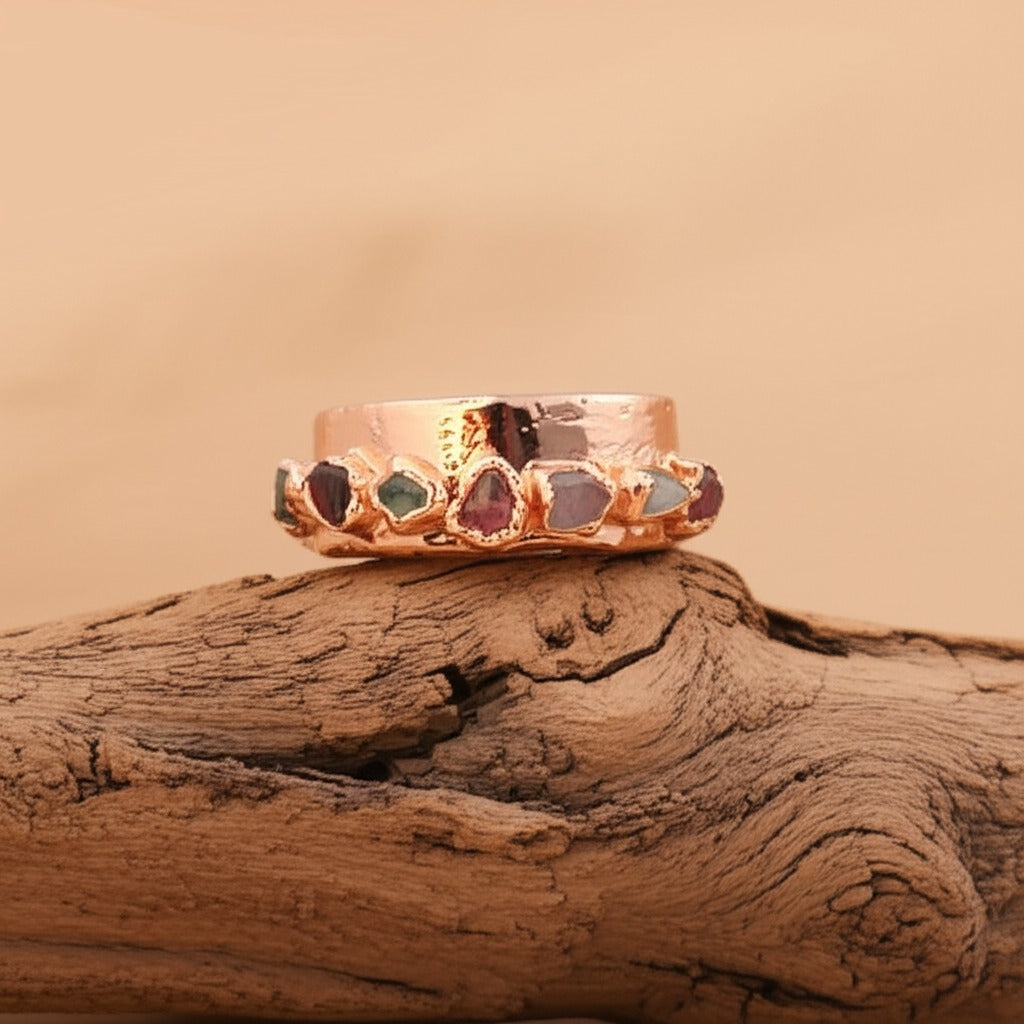 We craft soulful copper jewellery, setting hand-selected gemstones chosen for their natural beauty and energy. Each piece is thoughtfully designed with intention — timeless, meaningful, and made to accompany you on your journey.