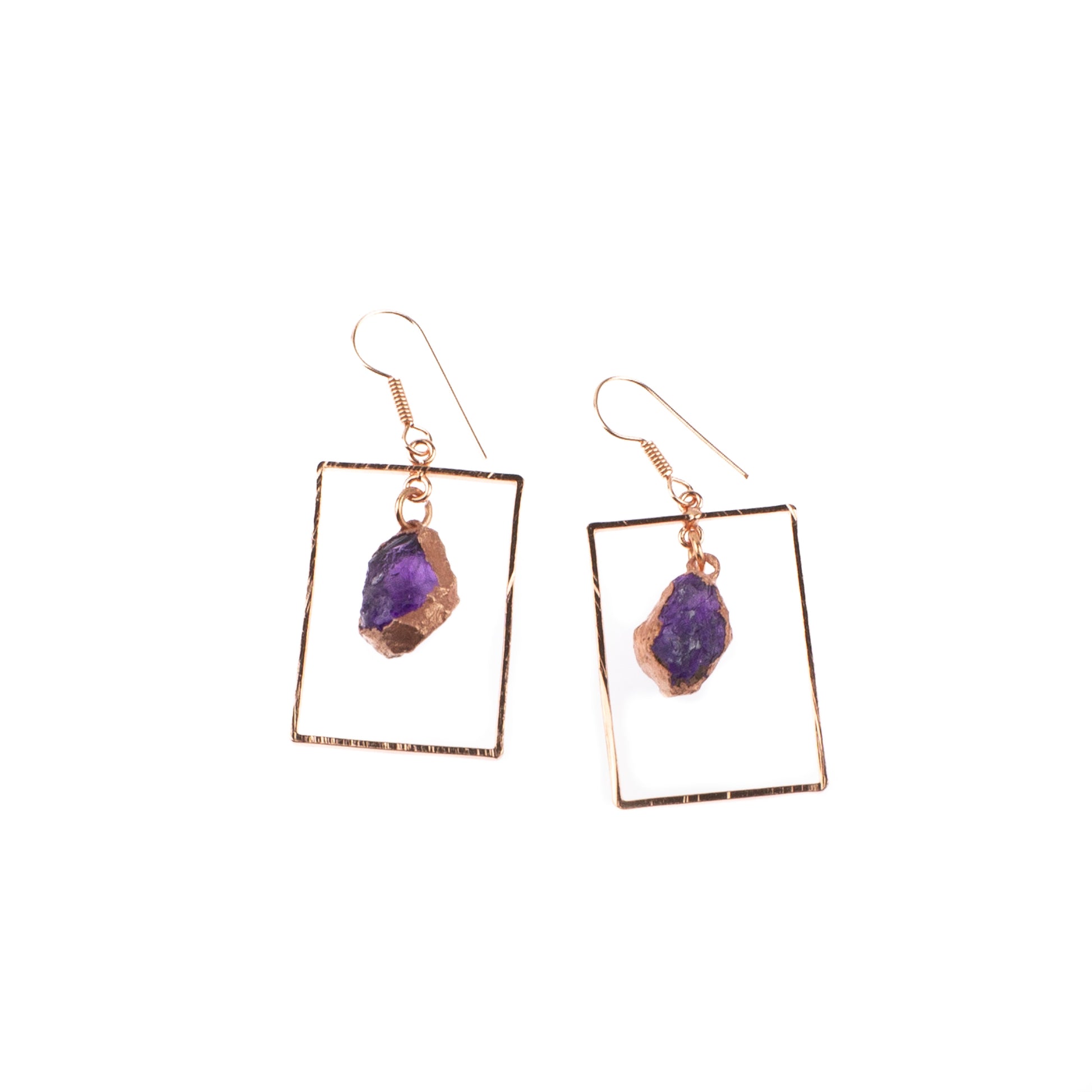 The rectangle and earring hooks are solid copper and is rose gold plated to preserve the finish. They are therefore hypoallergenic.
