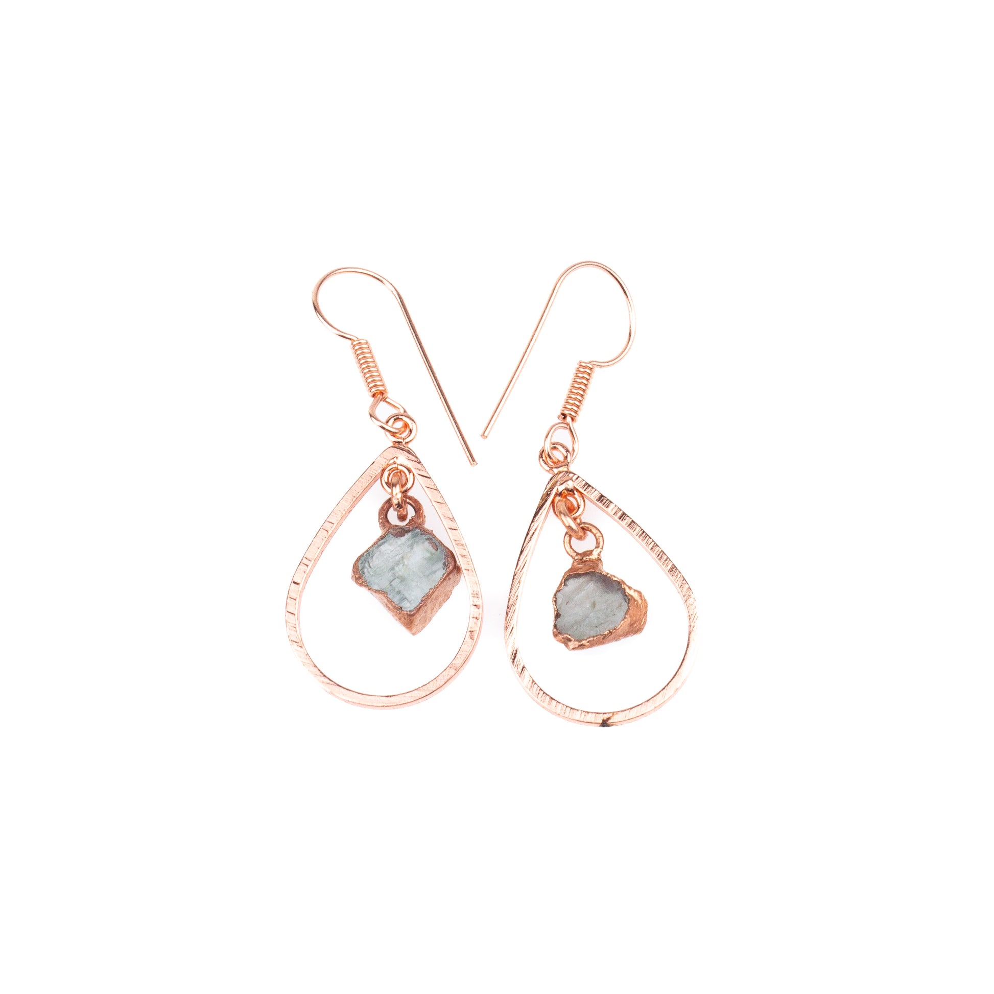 The drop-shape and earring hooks are solid copper and is rose gold plated to preserve the finish. They are therefore hypoallergenic.