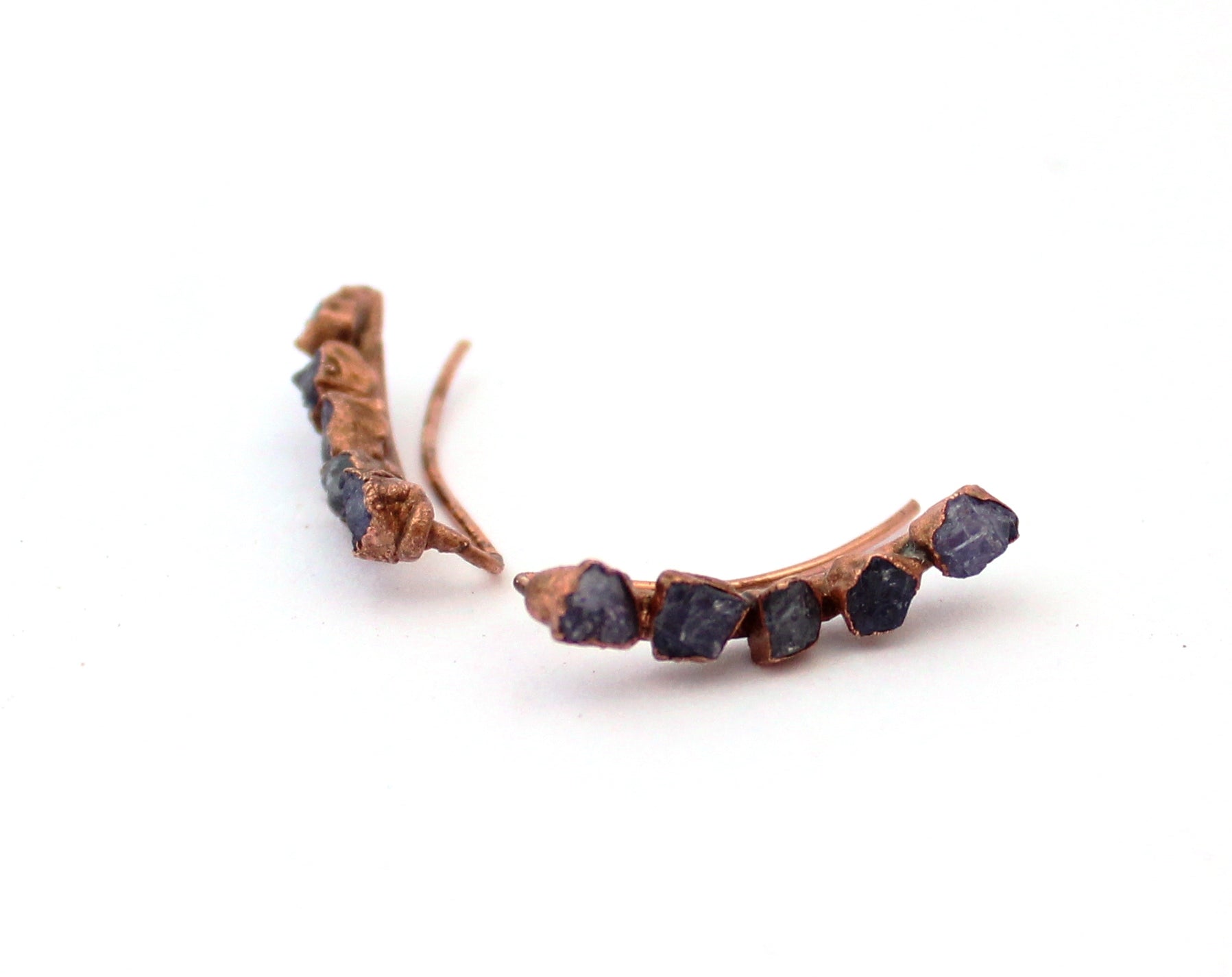 Raw gemstone copper ear climbers, designed to follow the curve of your ear. Natural stones, uncut and full of character.