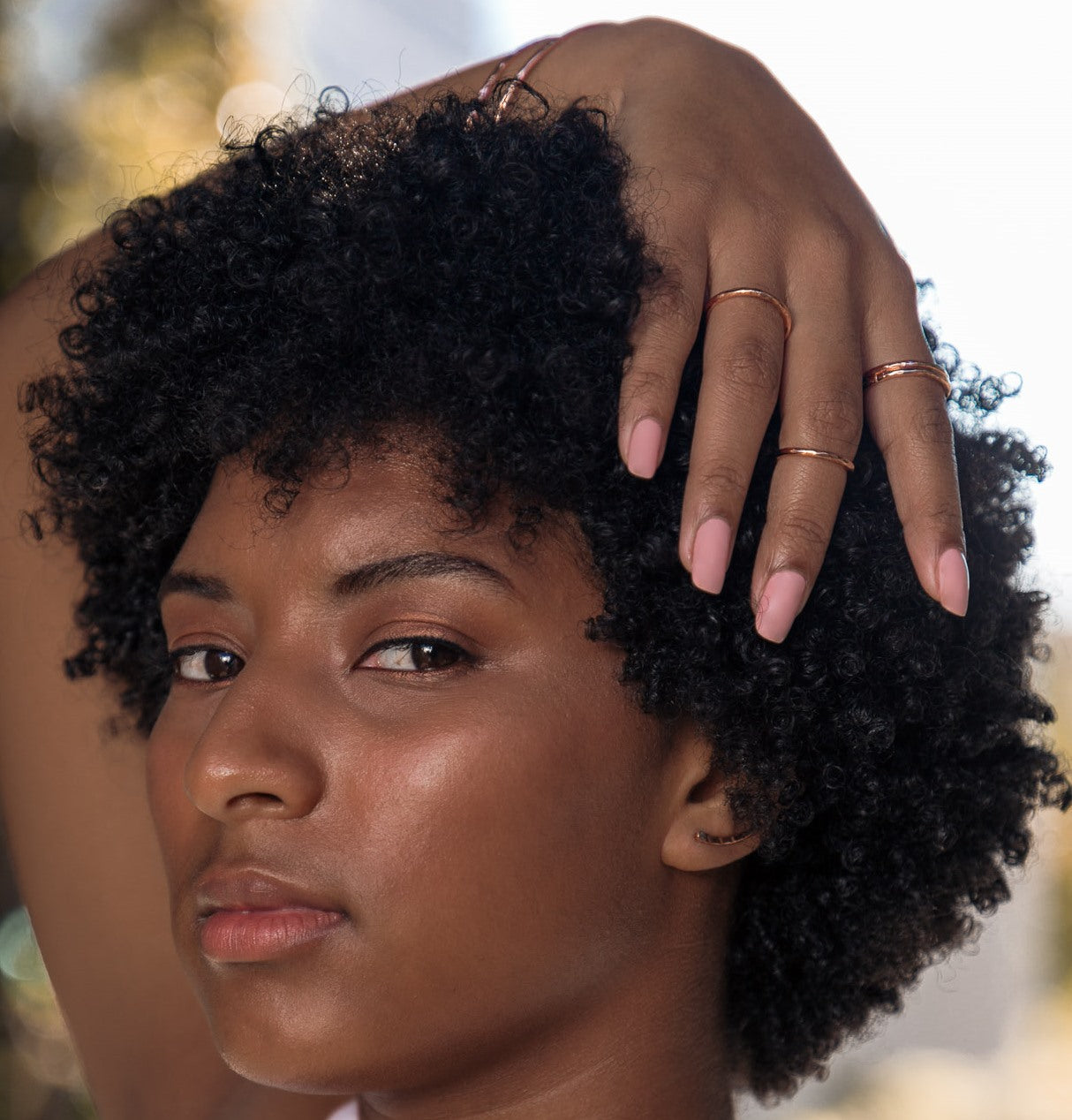 Rings are made with solid copper, although they are rose gold plated to preserve the finish. The plating will wear off in time, revealing the natural copper colour underneath. Copper is a natural antibacterial agent, and the wearing of copper jewellery is considered to have a therapeutic effect on the human body.