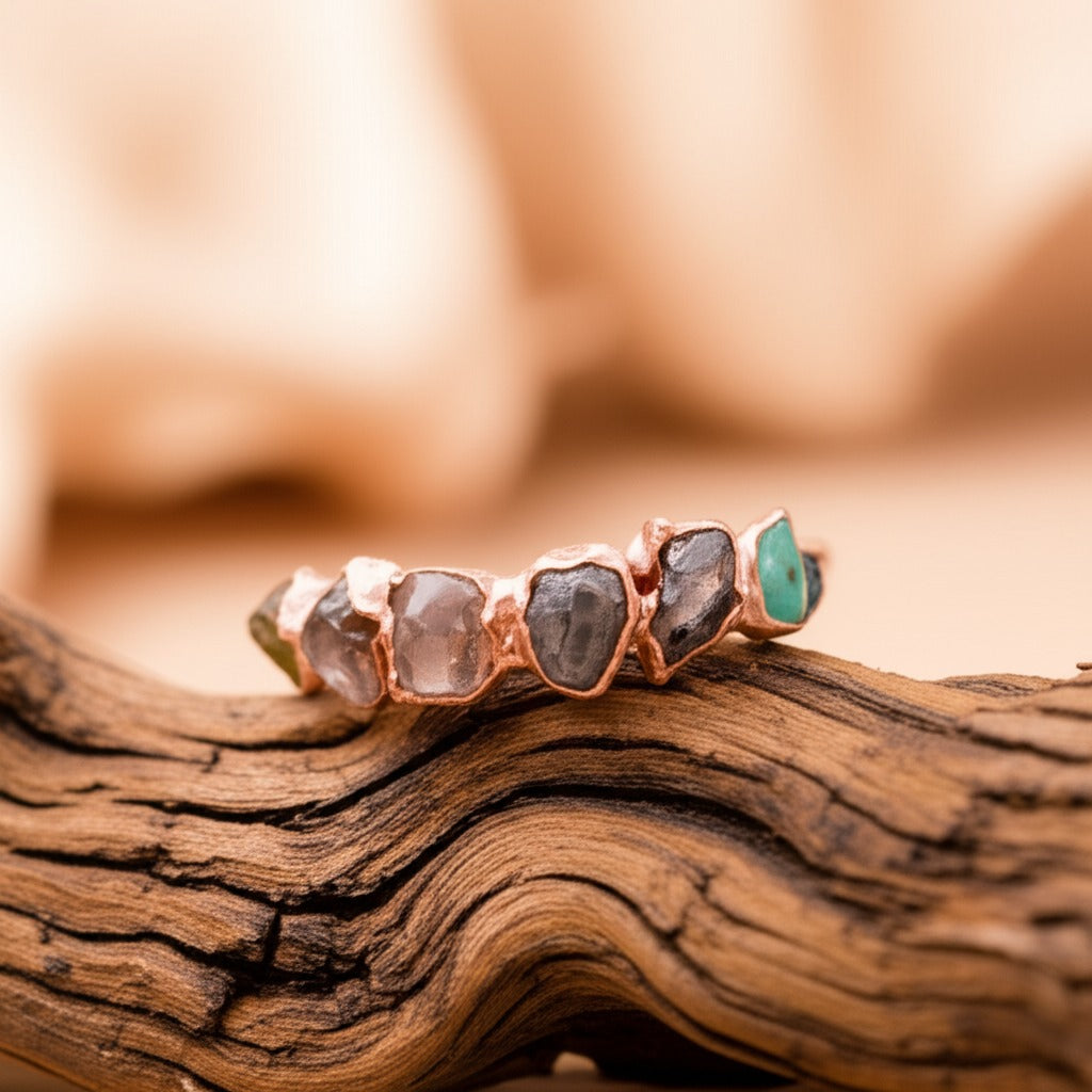 Your ring will be made with love and care, using solid copper and raw, unpolished stones — each one left in its natural form to honour the wild, imperfect beauty of nature. No two stones are ever the same, and that’s exactly the point.