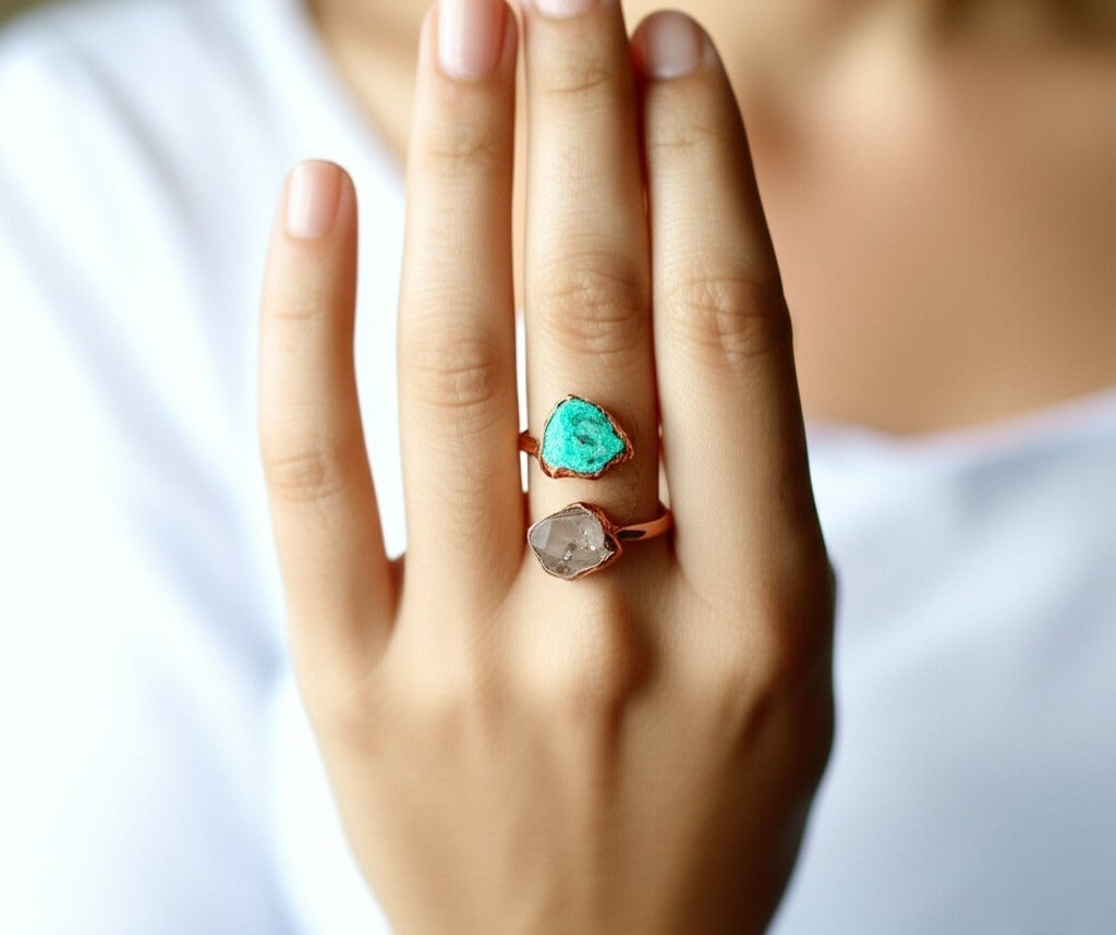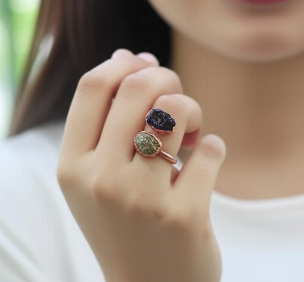 Natural. Untouched. A quiet reminder of your journey, held in the beauty of raw stone and copper’s grounding warmth.