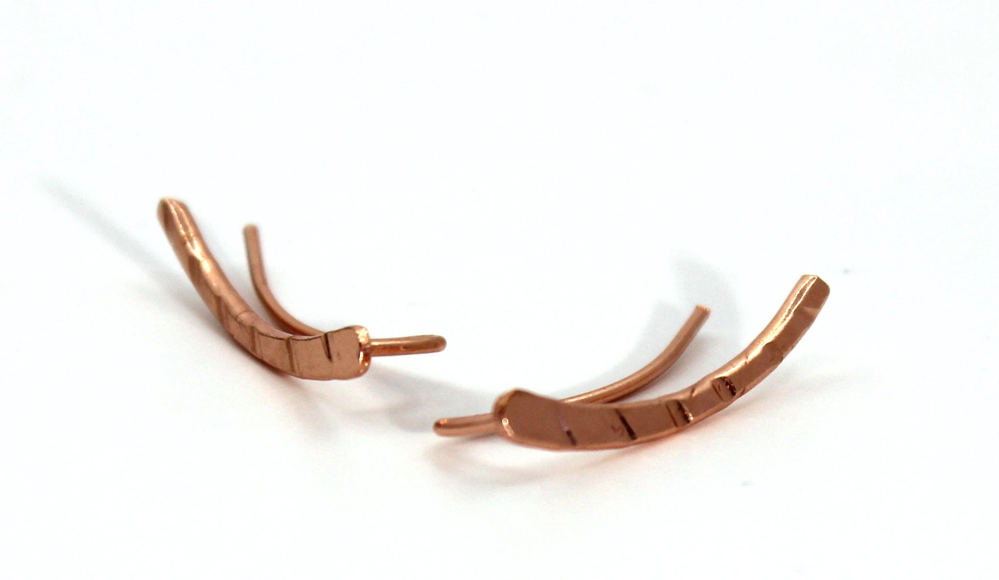 Made with solid copper and rose gold plated to preserve the finish, making them hypoallergenic. The plating will wear off in time, revealing the natural copper colour underneath. Copper is a natural antibacterial agent, and the wearing of copper jewellery is considered to have a therapeutic effect on the human body. Copper allergies are extremely rare, making these earrings a safe and stylish choice for most people.