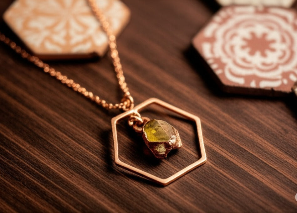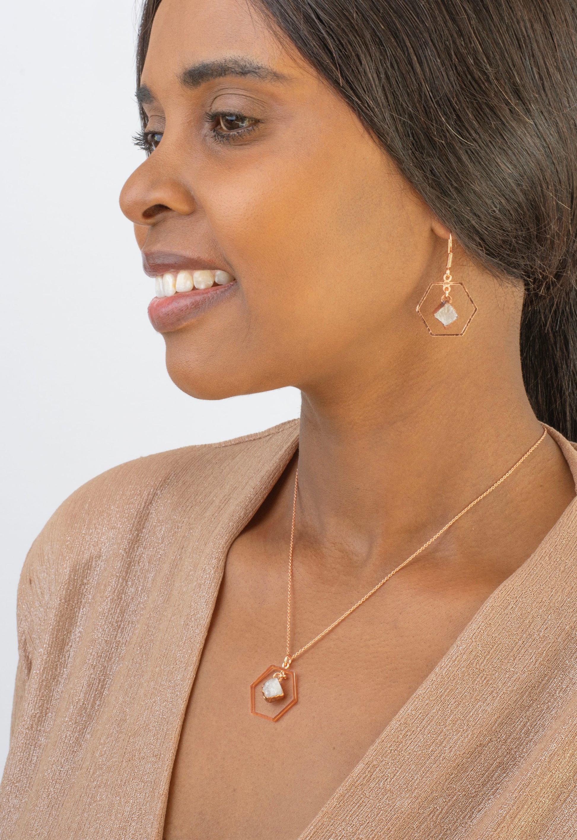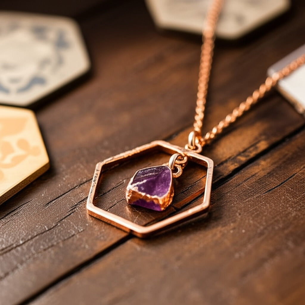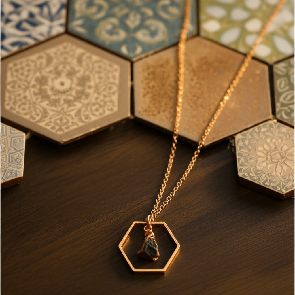 This hexagon gemstone necklace is a striking piece — bold in shape, grounded in meaning.