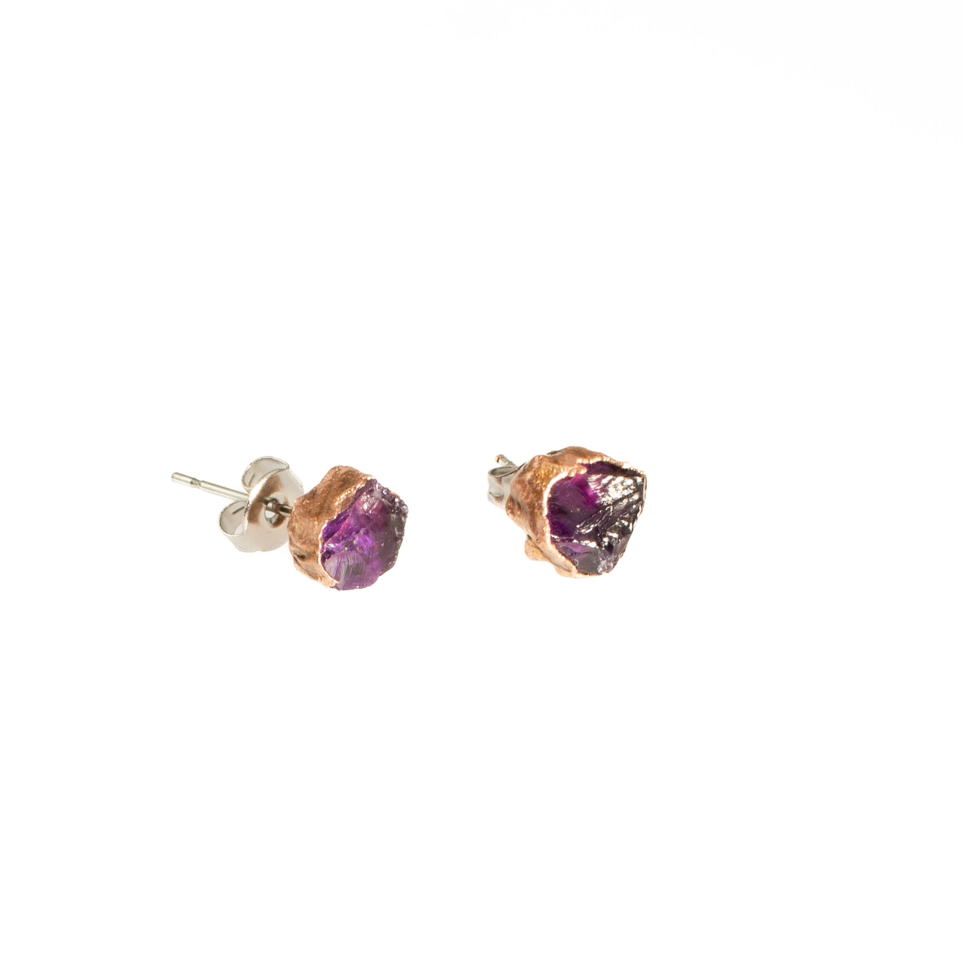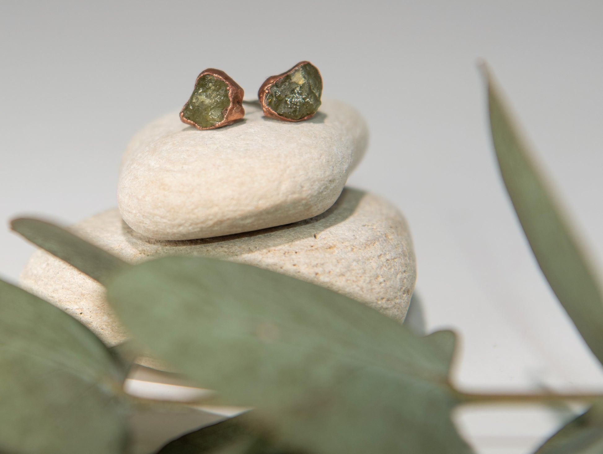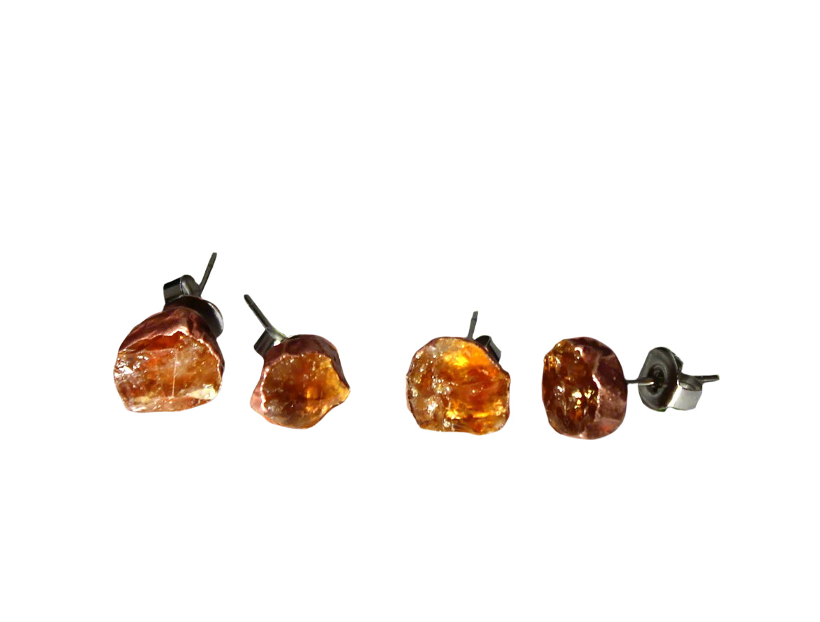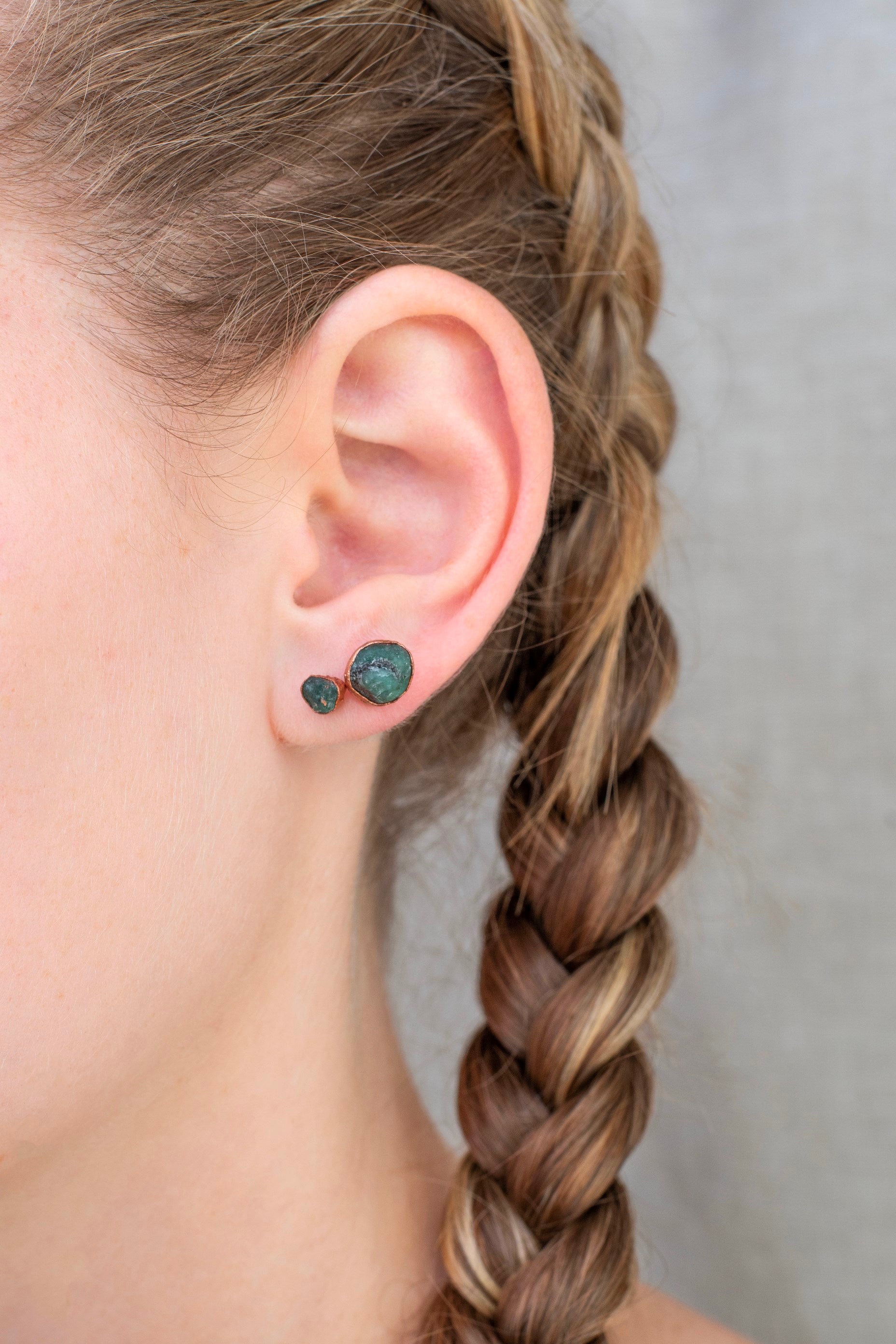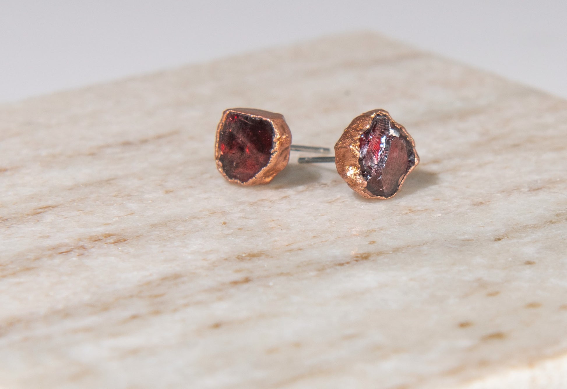Natural uncut gemstones (6–8mm) set in copper with stainless steel posts. Bold, earthy studs made for everyday wear.