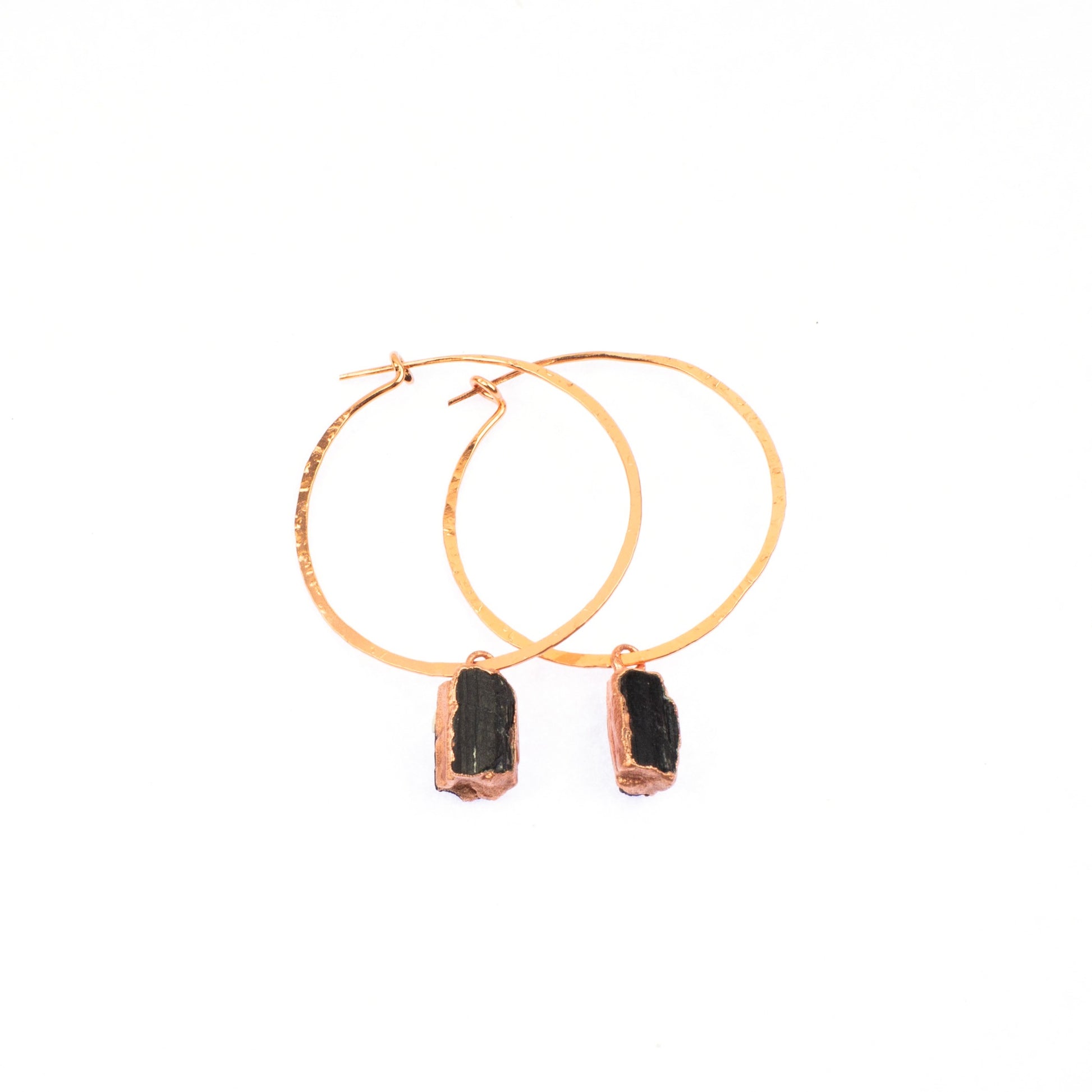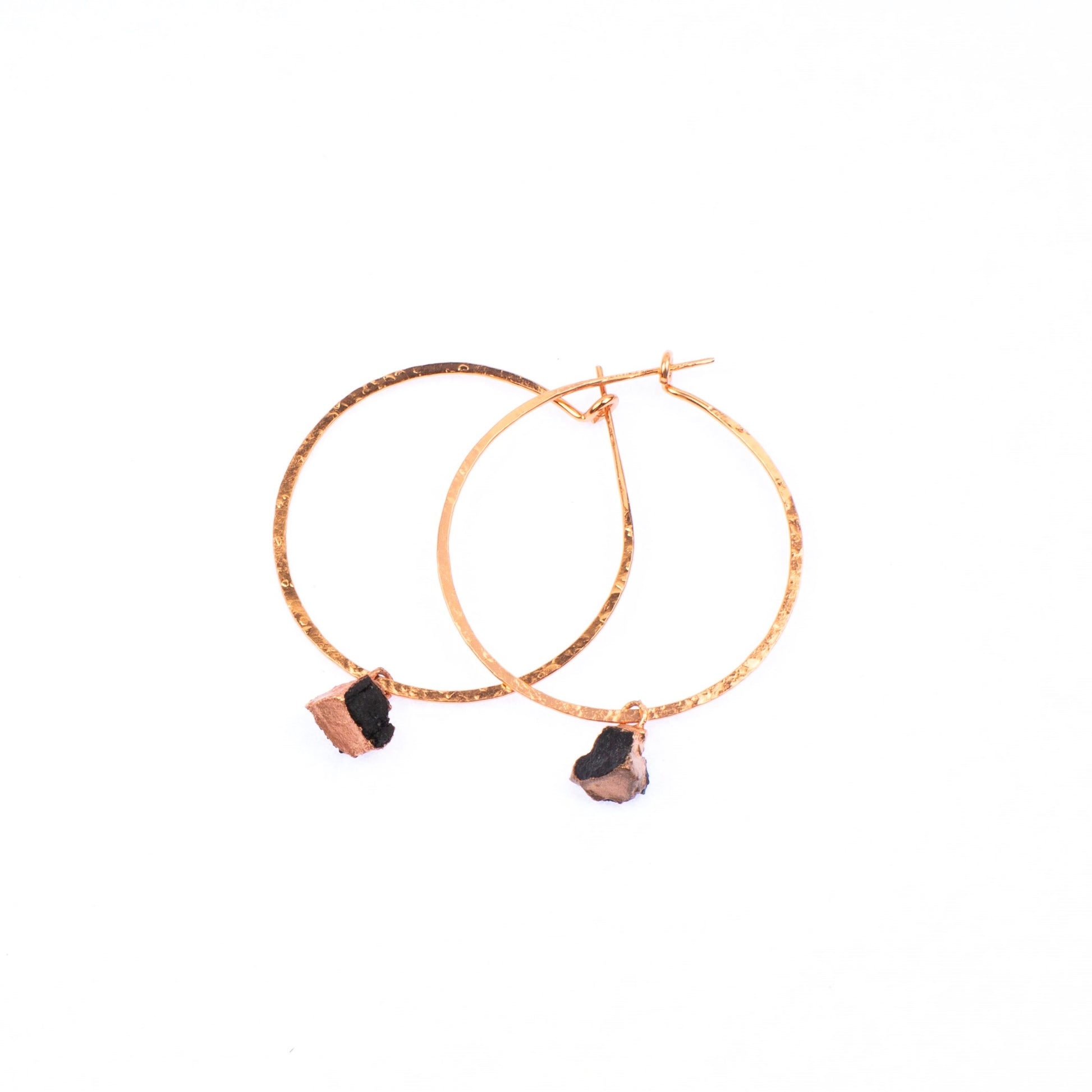 These large (4cm) rose gold plated, copper hoop earrings, with detachable gemstones set in copper, are so versatile. Simply open the hoop, slide the gemstone charm off, replace with another, or wear on its own.