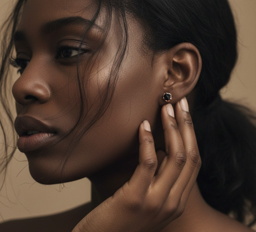 The studs are crafted through copper electroforming, a process where copper is deposited over several hours in a copper-acid solution. This organic method creates wonderfully unique textures, adding to the charm of each earring.