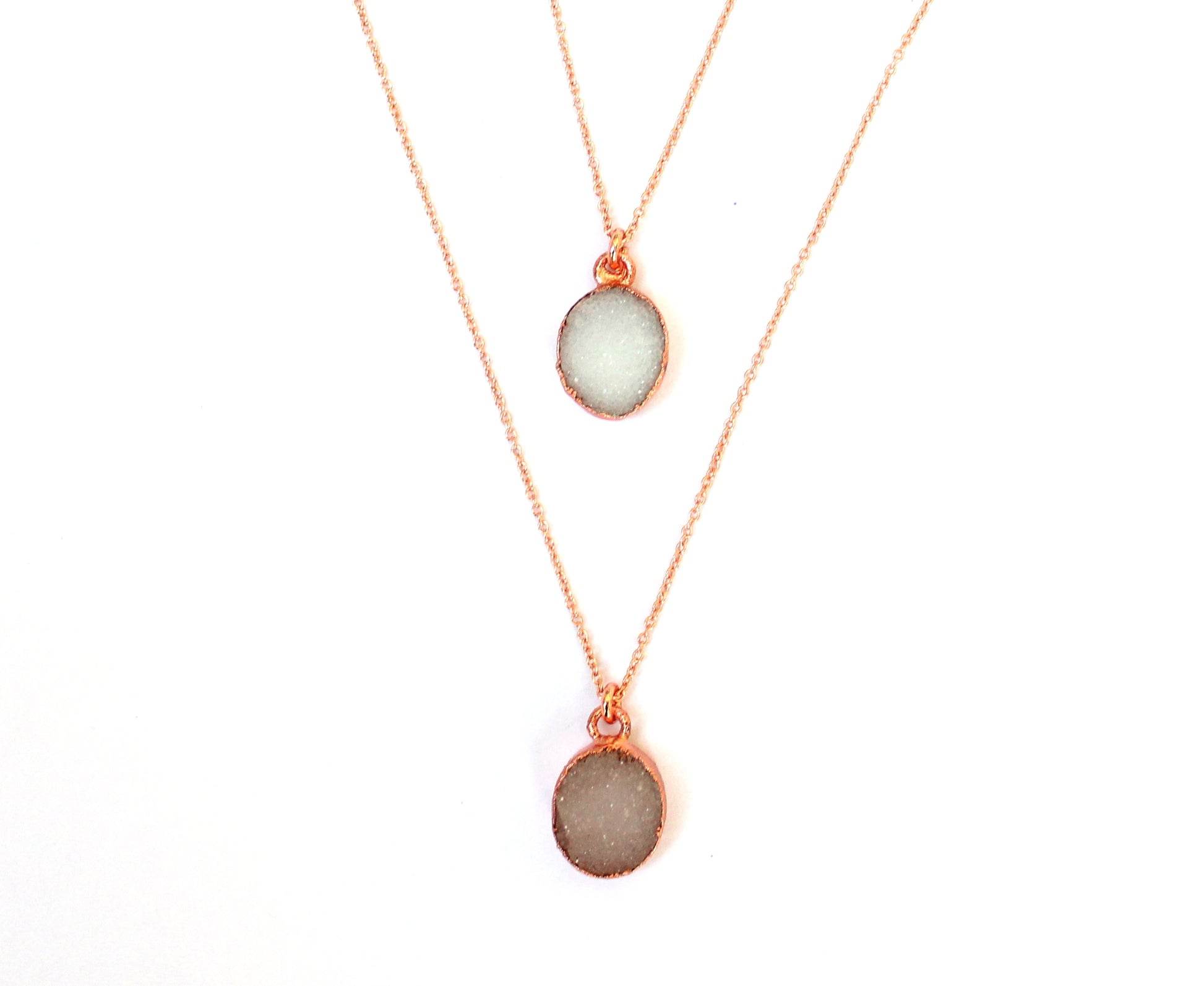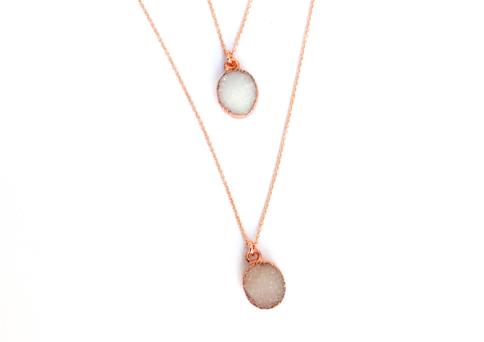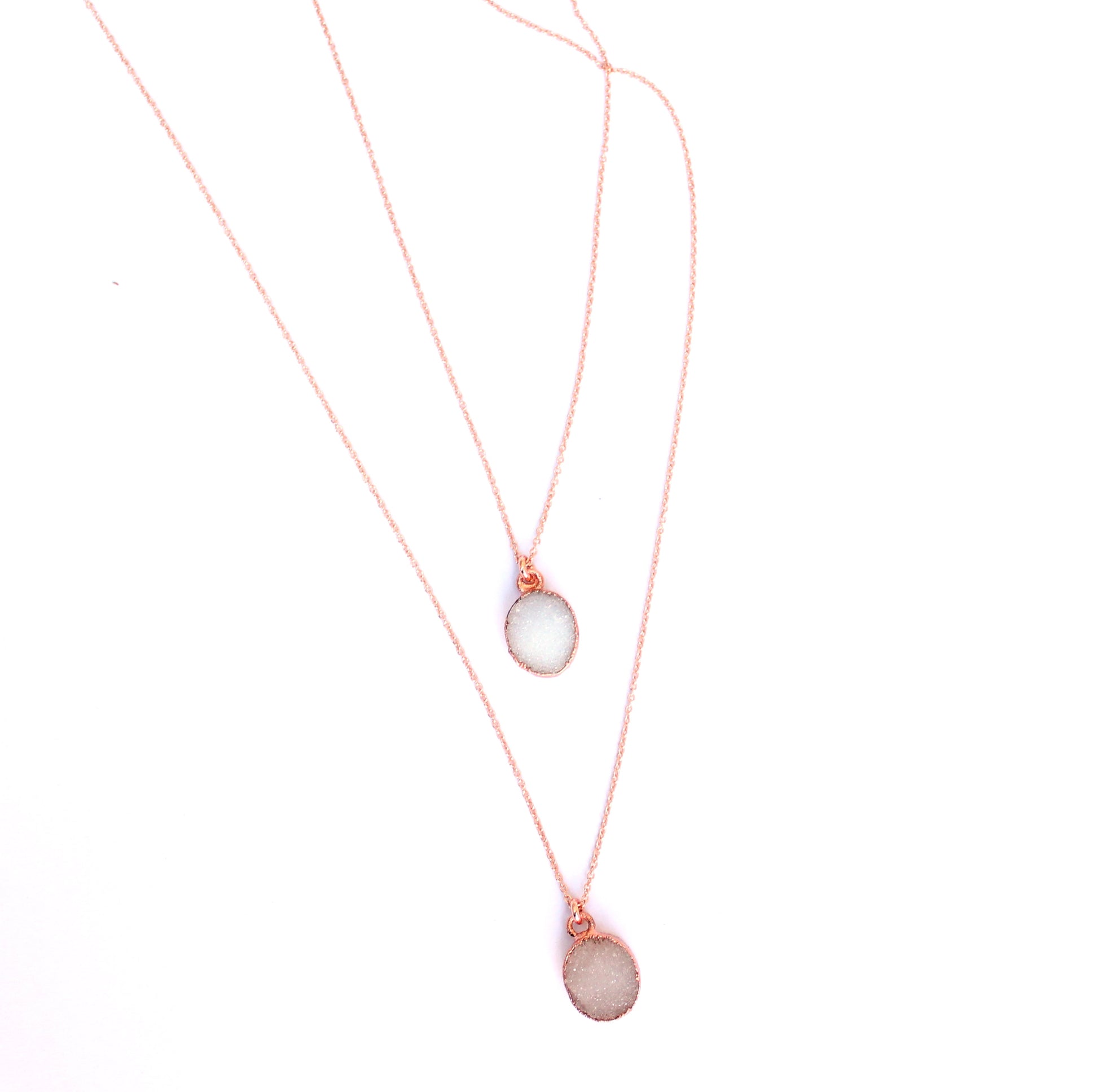This necklace features a 10mm x 7mm druzy crystal — just enough sparkle to catch the eye, but still raw and earthy in its presence.