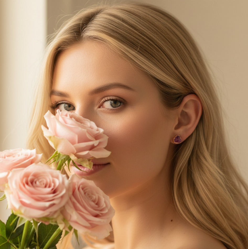 Natural pink tourmaline copper studs with stainless steel posts and butterflies.