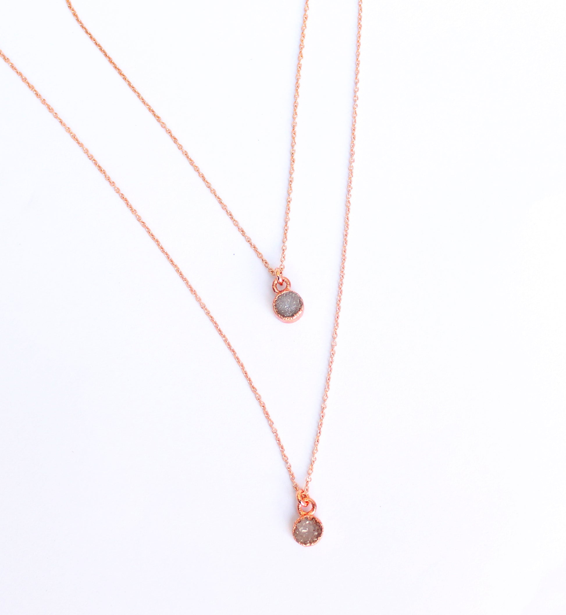 Natural druzy crystal copper necklace, handmade with love and care. The size of the druzy crystal is 6mm round. Our druzys range from brilliant white to shimmering grey.