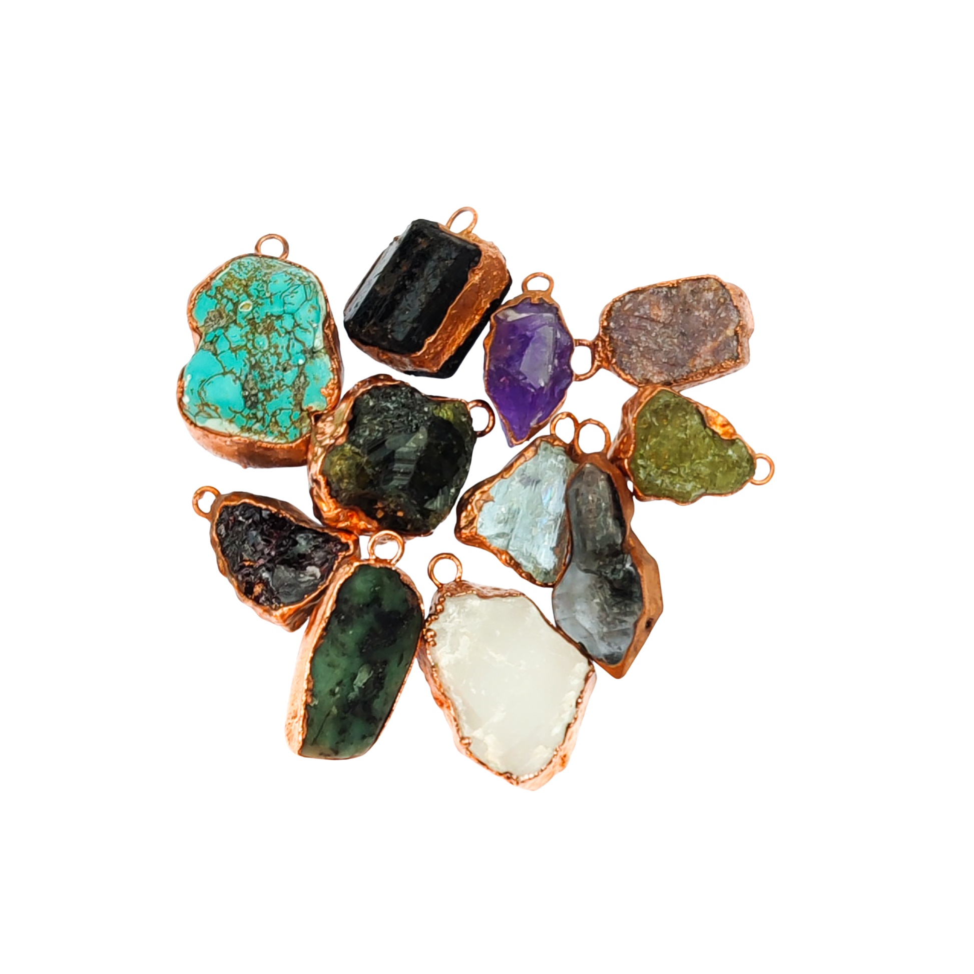 Our copper electroforming process creates an organic texture that's as unique as the stone itself, making every charm a true original.
