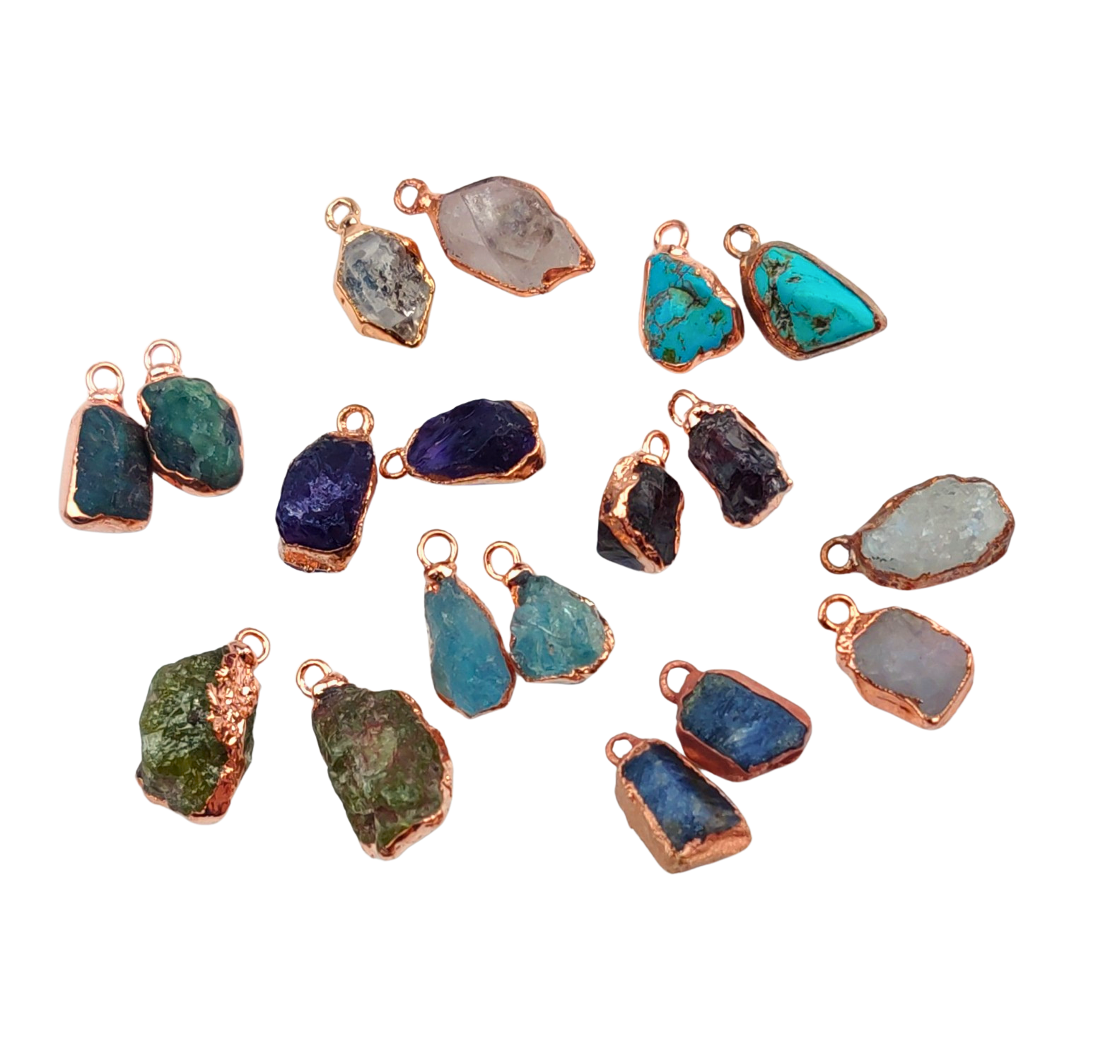 Our copper electroforming process creates an organic texture that's as unique as the stone itself, making every charm a true original.