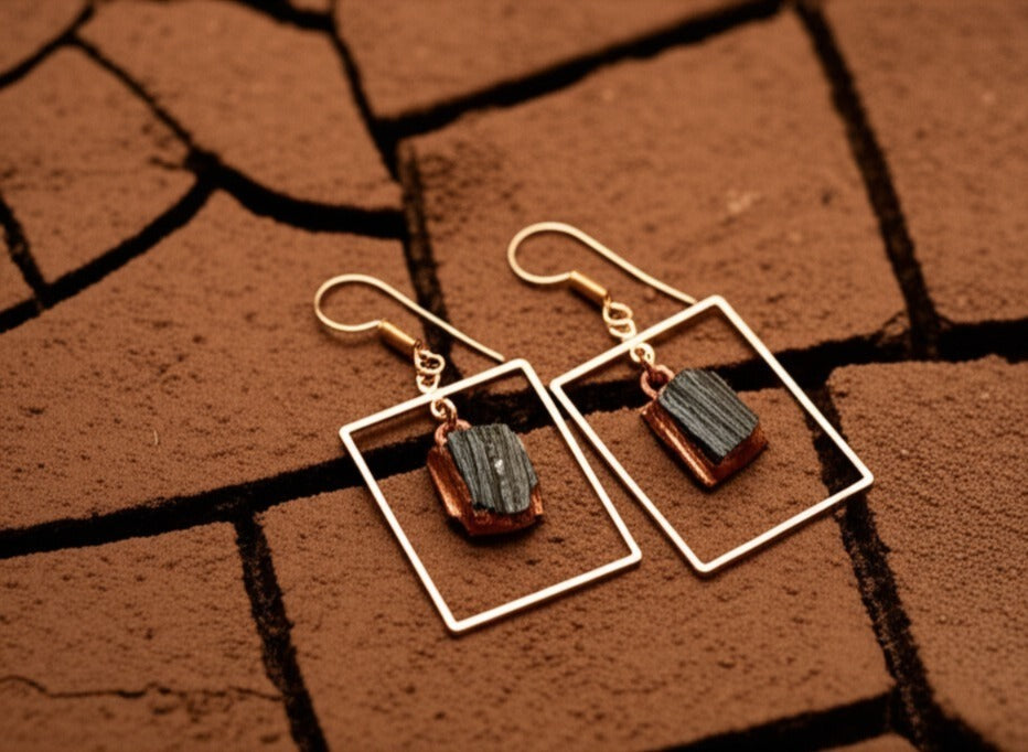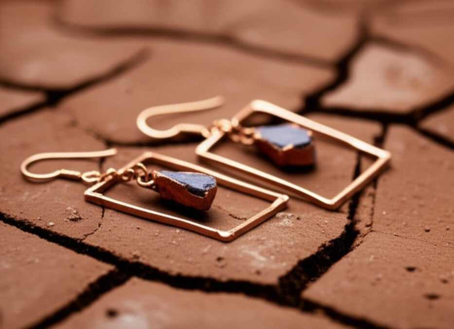 Lightweight but full of presence, they hang from rose gold plated copper hooks — hypoallergenic and made for comfortable wear.