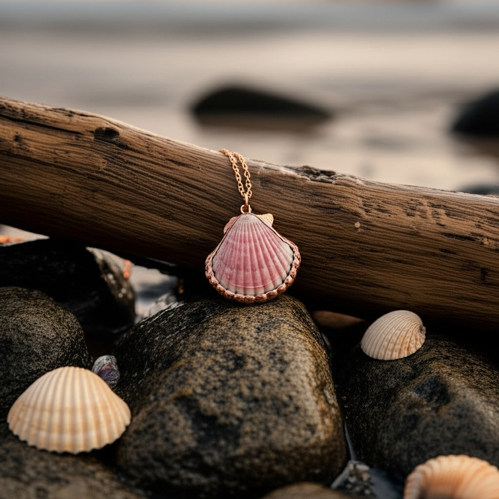 Each scallop shell is a quiet echo of the sea – salt-kissed mornings, soft footprints in sand, and the rhythm of the waves. Gently gathered from nature’s shoreline and preserved in warm copper, every shell honours its delicate ridges and curves.
