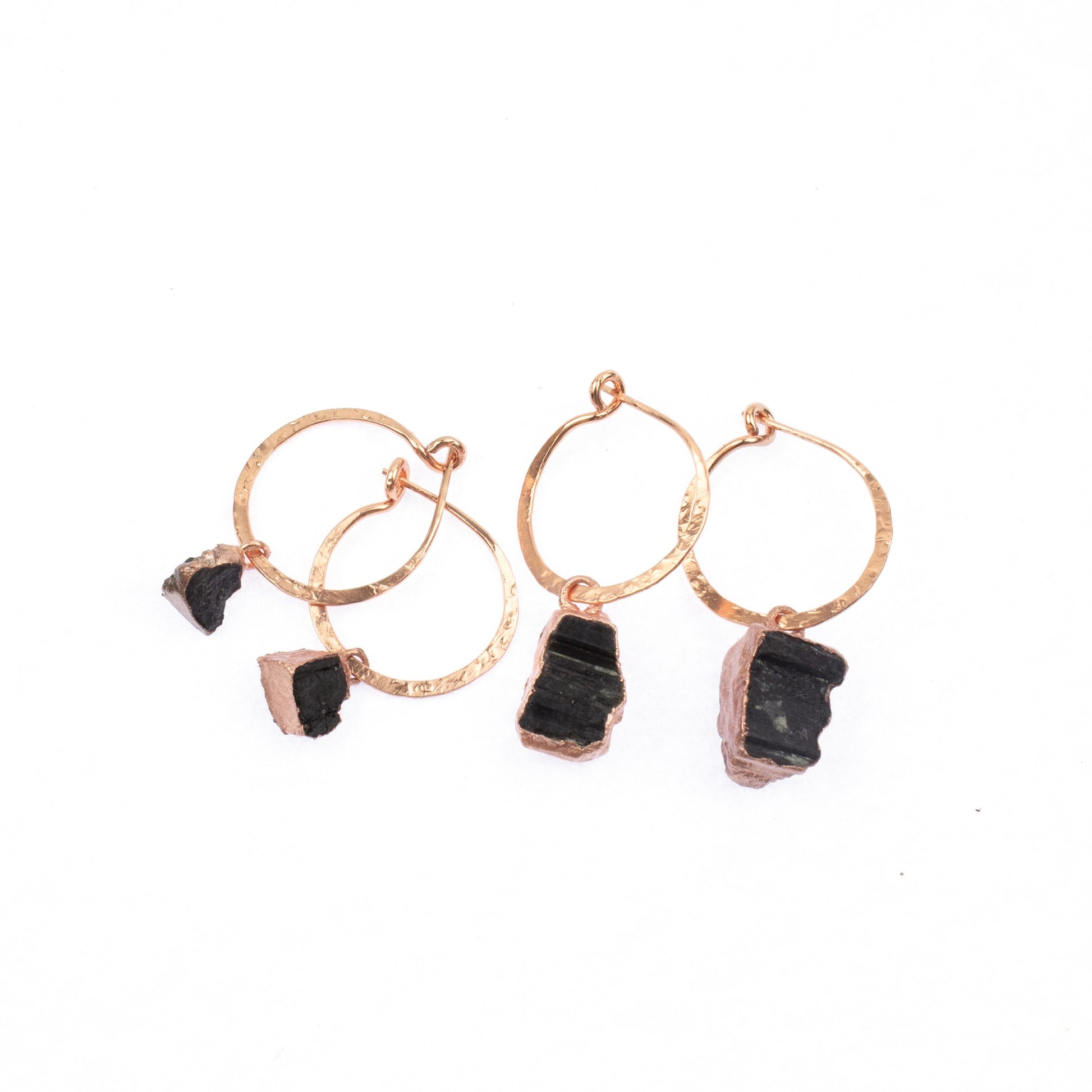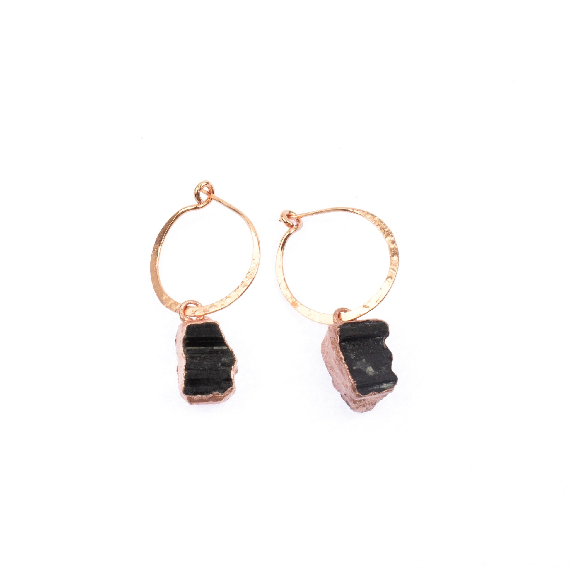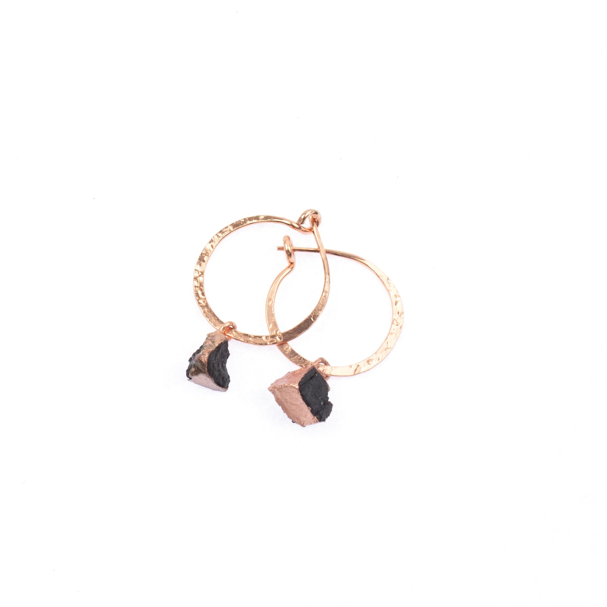 These small (2cm) rose gold plated, copper hoop earrings, with detachable gemstones set in copper, are so versatile. Simply open the hoop, slide the gemstone charm off, replace with another, or wear on its own.