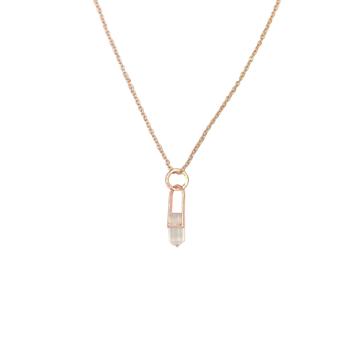 Each pendant features a classic gemstone point, (13mm × 5mm) held within a hammered copper arch designed to slot seamlessly into the stone.