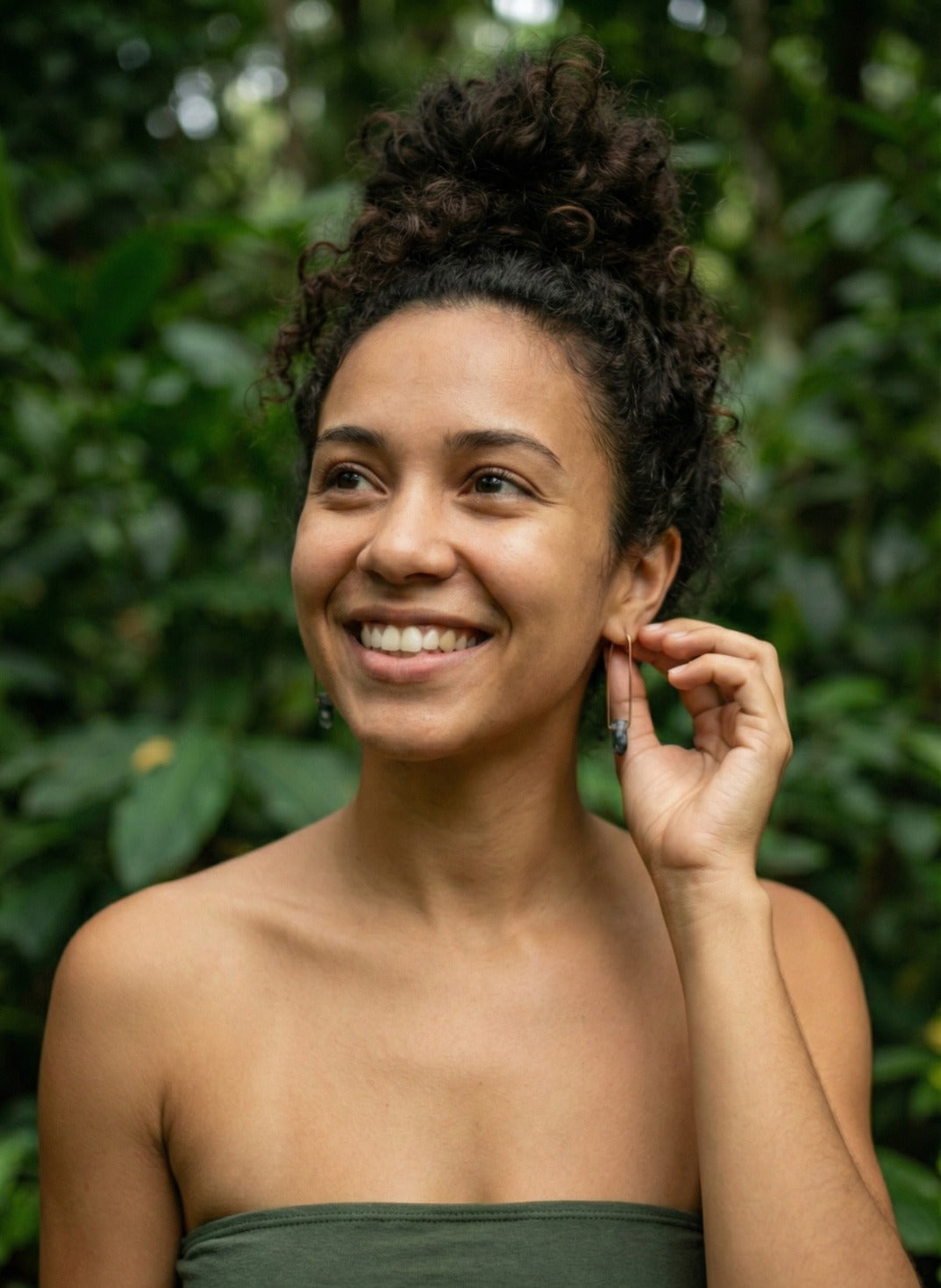 The clean line of the hook creates soft movement, allowing the stone to sit lightly and naturally.