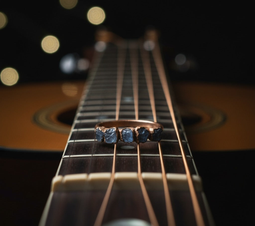 Natural raw tanzanite copper eternity ring.