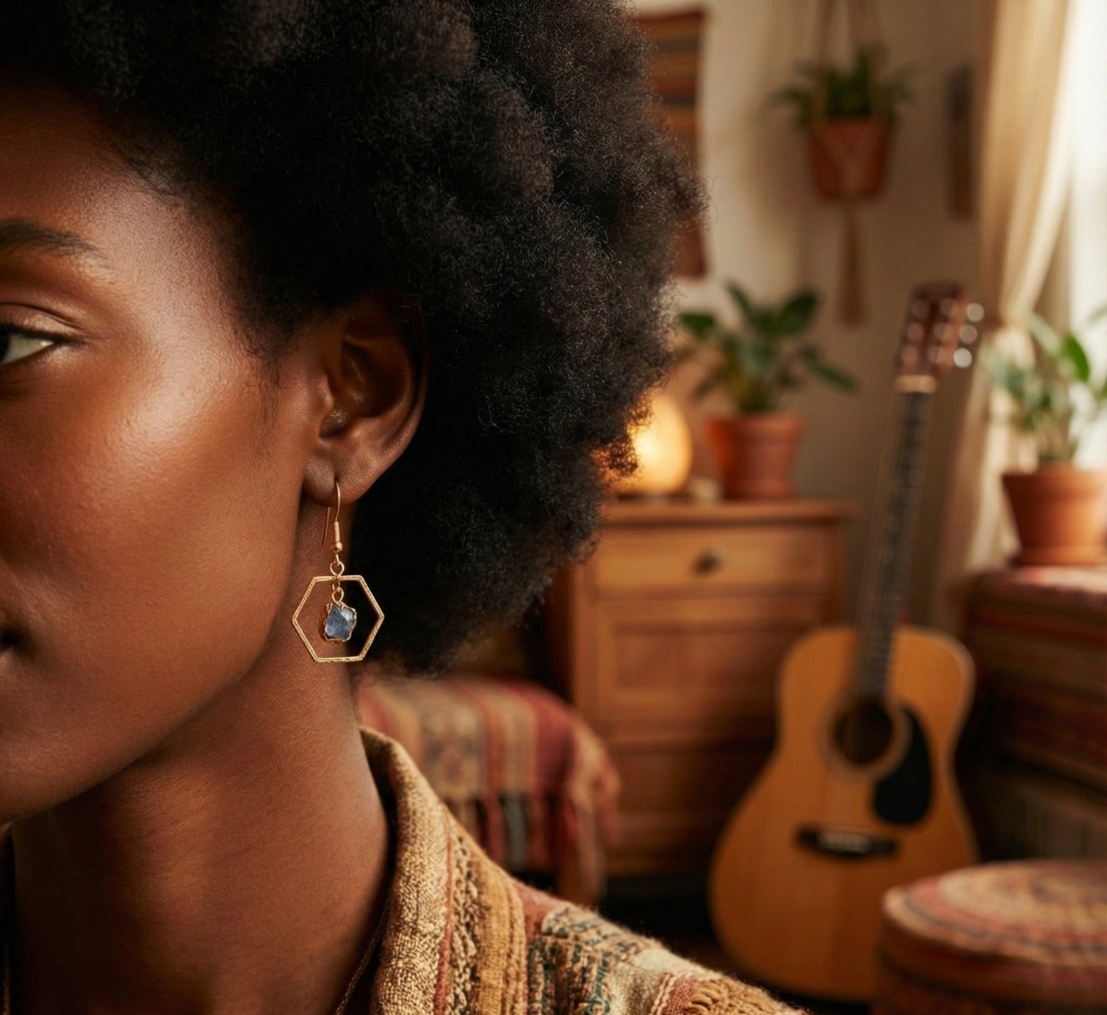 The hexagon and earring hooks are solid copper and is rose gold plated to preserve the finish. They are therefore hypoallergenic.