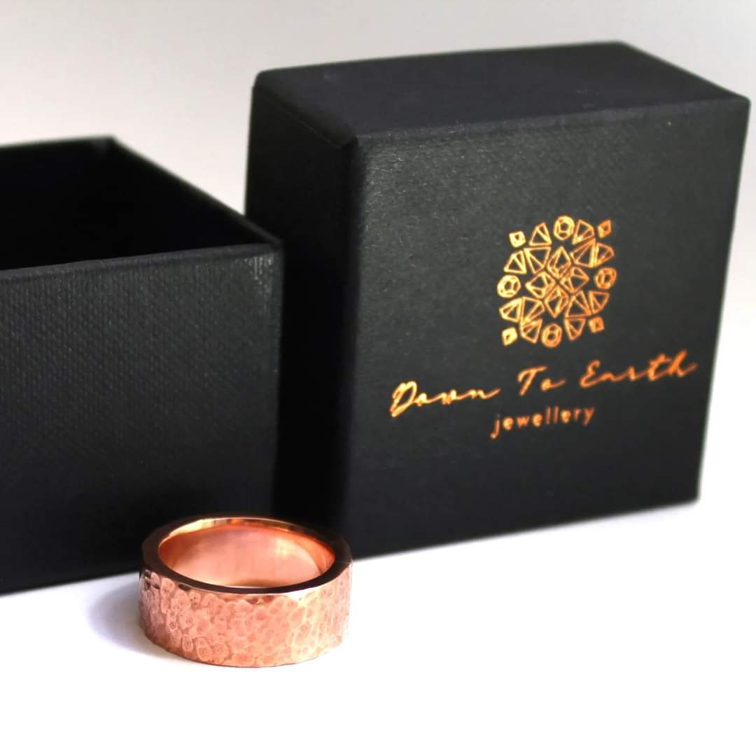 This solid copper ring is handcrafted in your chosen finger size, shaped with intention and finished with a hammered texture that catches the light softly.